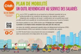 Les plans de mobilité, auparavant appelés plans de déplacement entreprise (PDE) ou administration (PDA) sont destinés à faciliter la mobilité des salariés. La CFDT Île-de-France propose aux militants et responsables syndicaux de les accompagner dans la construction et la négociation de ce plan.