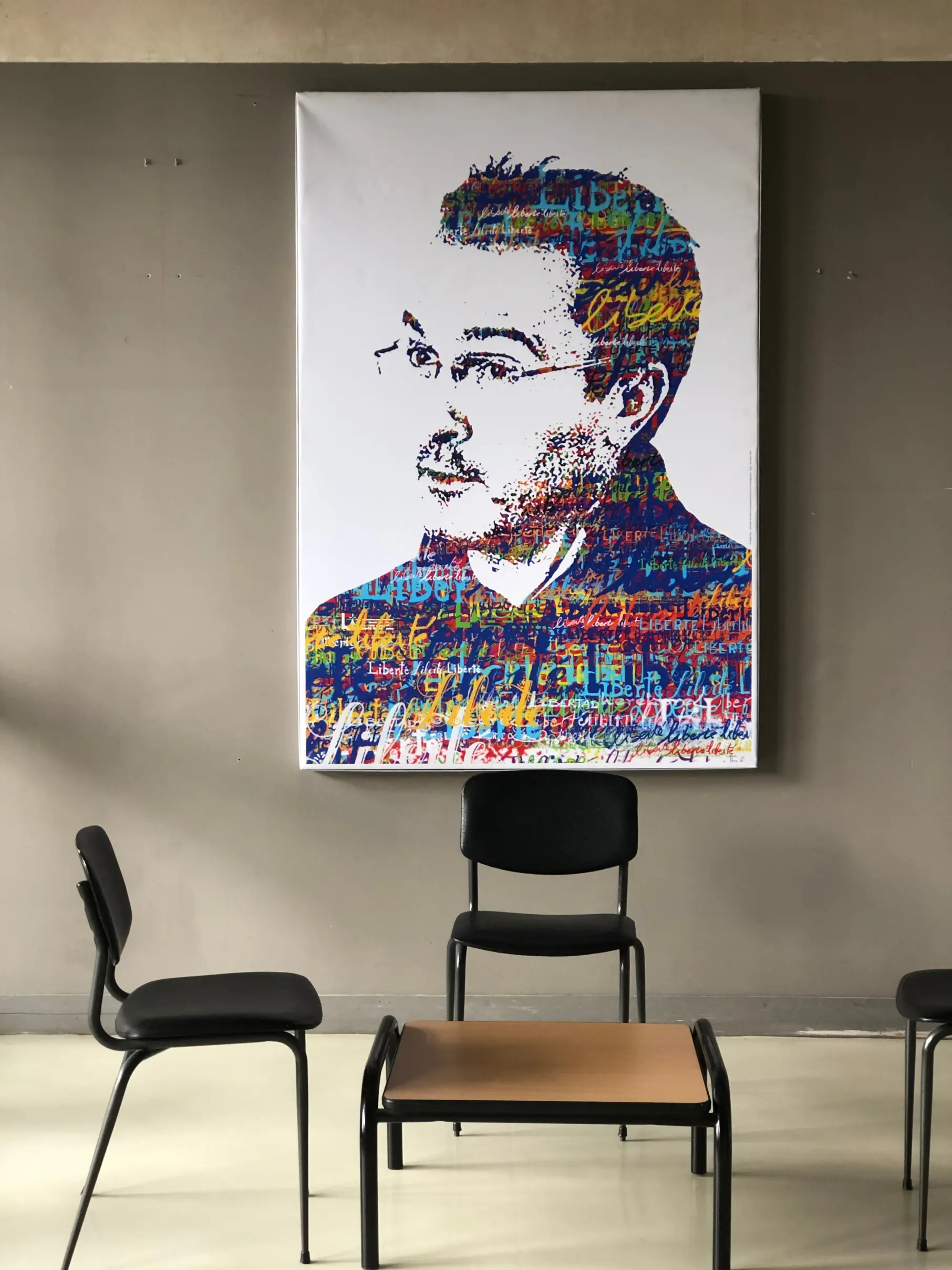 Portrait de Samuel Paty dans le collège où il enseignait.