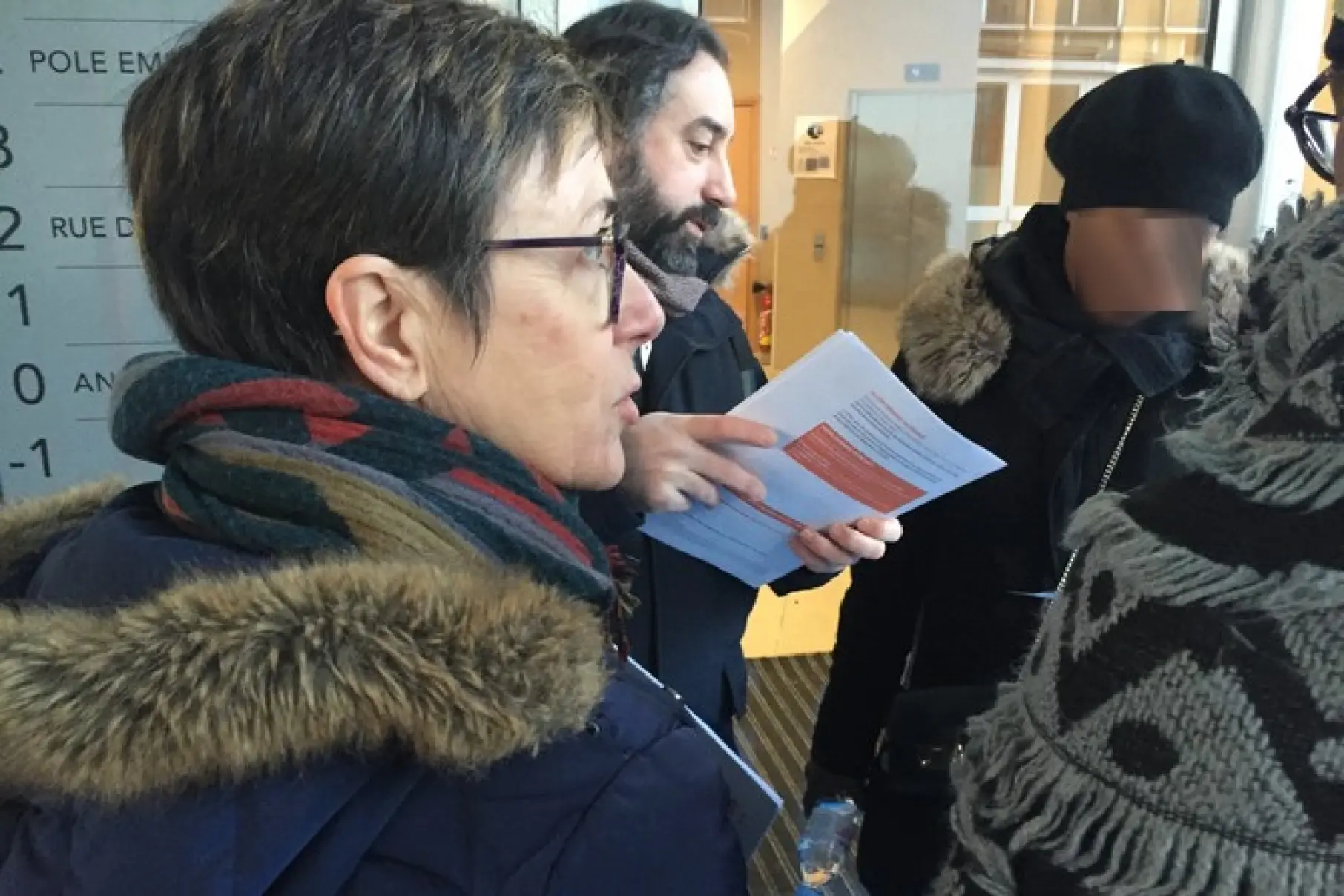 Distribution de l'enquête et du tract CFDT devant l'agence Pôle emploi de Saint-Ouen (C.M.).