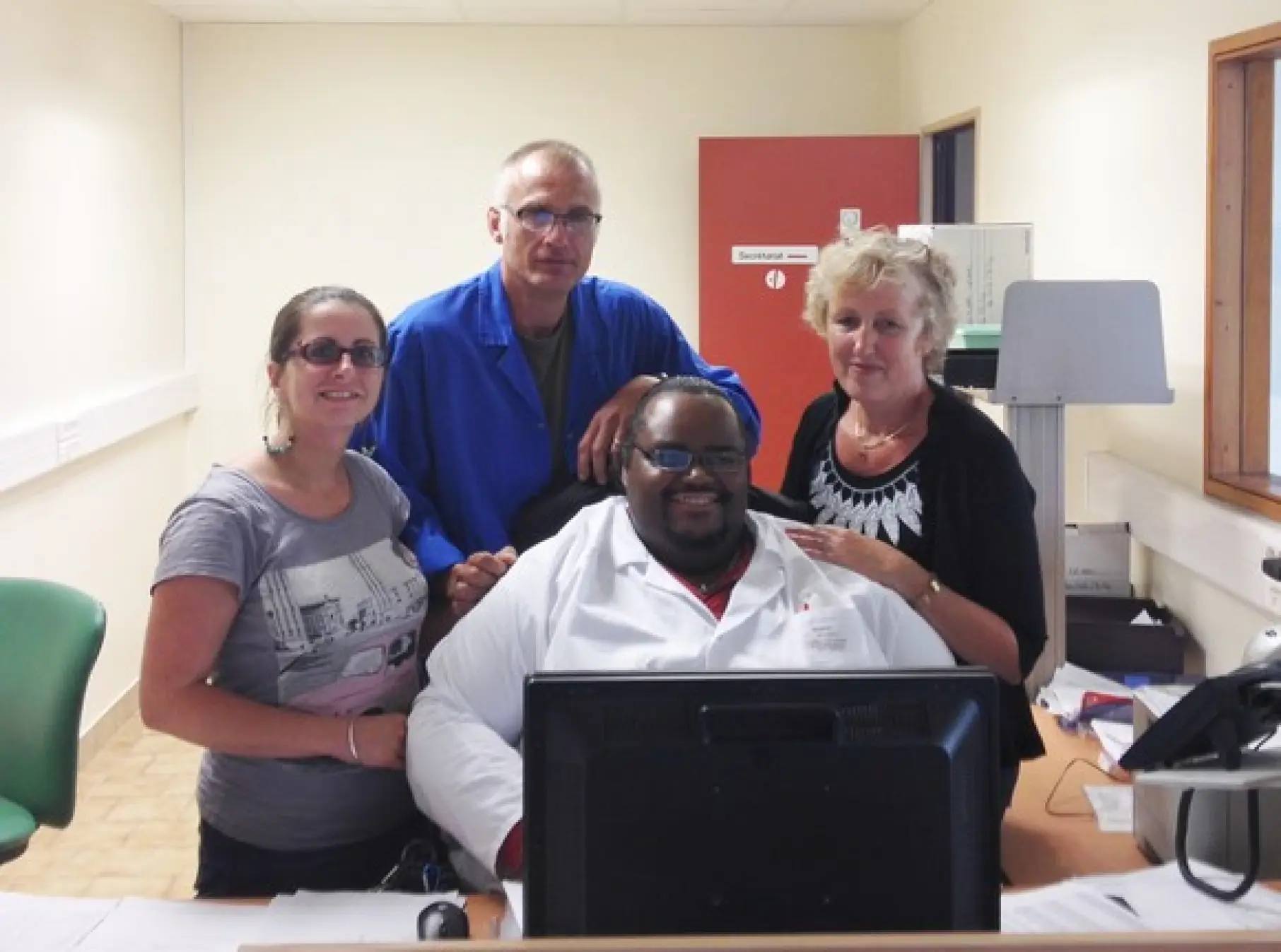 Le jour se lève à peine sur le Centre hospitalier intercommunal Robert Ballanger que l’équipe CFDT - composée de militants locaux et responsables de l’interprofessionnel francilien - est déjà à pied d’œuvre. Premier objectif du jour : sensibiliser les agents, à travers une distribution de tracts alertant sur la situation de Georges Mensah, adjoint administratif au laboratoire d’analyse médicale, atteint d’une certaine forme de sclérose en plaque. Se déplaçant en fauteuil électrique, le jeune homme travaille depuis deux ans entre deux postes : l’un aménagé et isolé à l’entrée du labo, l’autre, non aménagé, au cœur du labo. Une semaine sur cinq (voire plus en cas d’absence de collègue), il quitte ainsi un poste adapté à son handicap, pour un autre qui ne l’est pas. « La direction justifie ce roulement par le besoin de ne pas isoler Georges. Le problème, c’est que sur ce second poste, la chaîne de déplacements est complètement inadaptée. explique Marylène Morvan, la secrétaire de section CFDT de l’établissement. Georges est obligé de faire lever trois personnes pour se rendre aux toilettes », étaye-t-elle, sous les yeux indignés du comité de soutien formé pour l’occasion.
