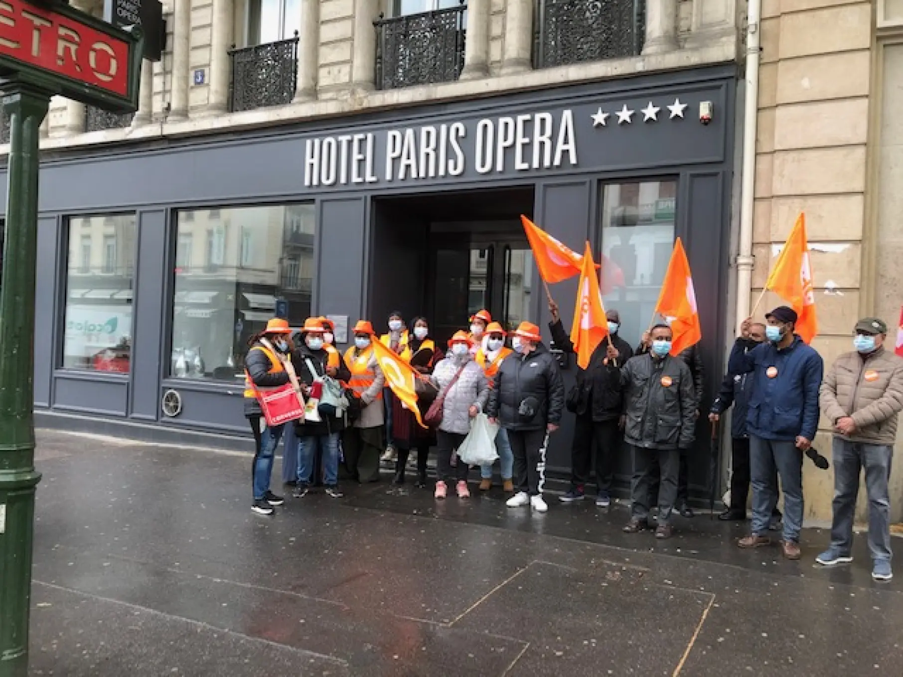 Mobilisation de la CFDT devant l’hôtel Paris Opéra by Melia le 6 mai.