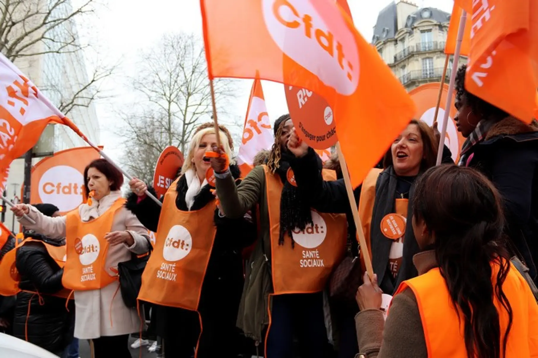 Des militants CFDT lors du rassemblement du 30 janvier 2018 à Paris.