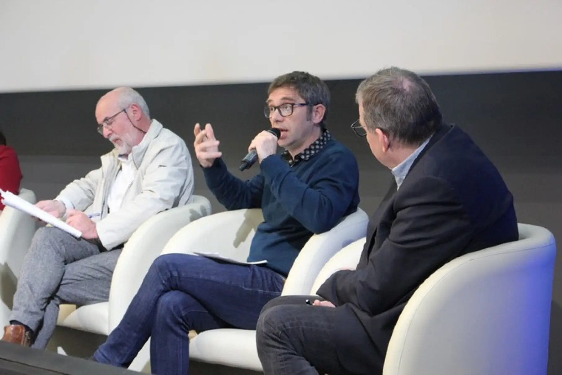 70 militants ont participé au débat qui s’est tenu dans les locaux du ministère de la Transition écologique et solidaire à La Défense. De gauche à droite : Édouard Bouin, Olivier Clément et Vincent Pigache.