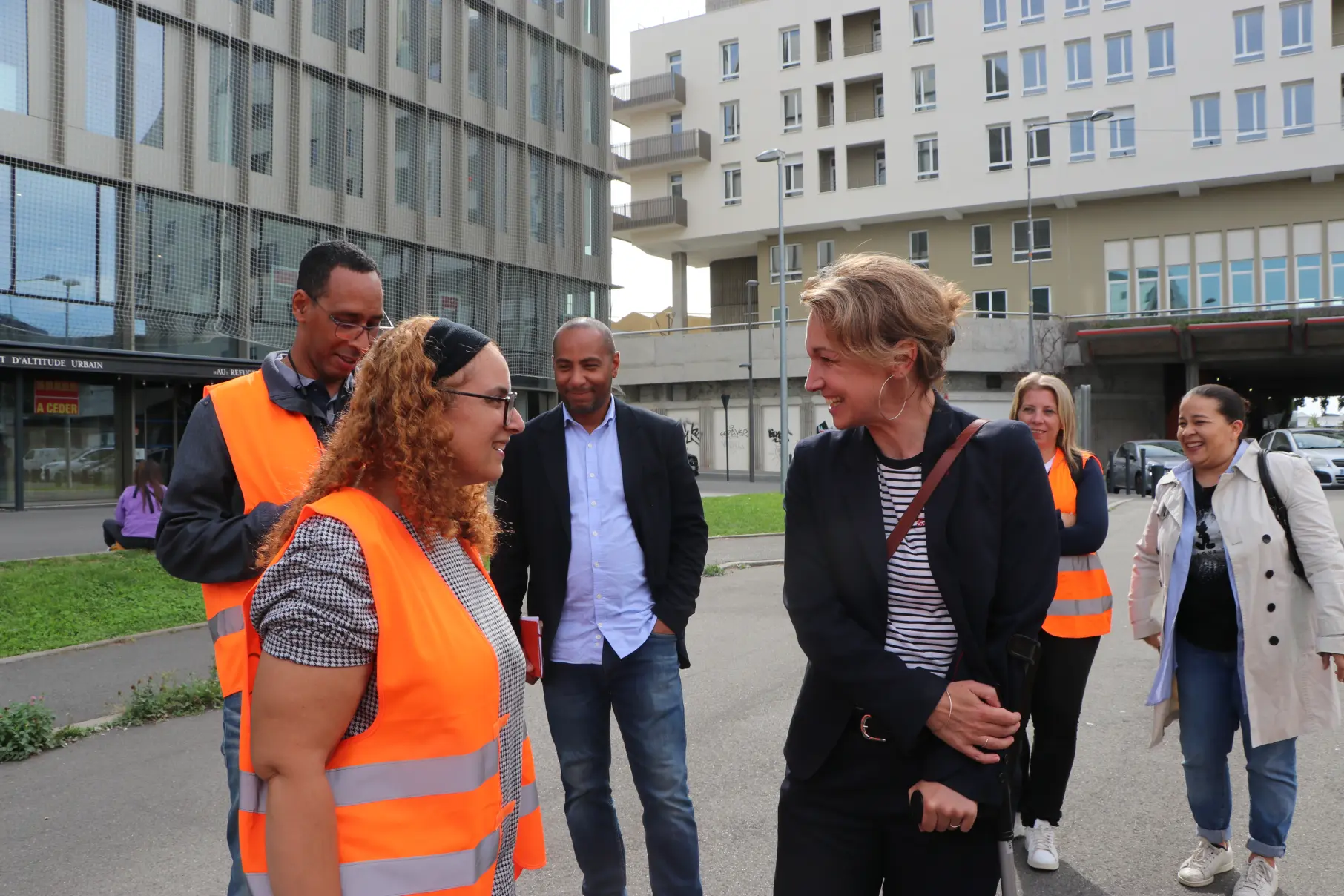 Des actions adressées à un public spécifique ont été programmées par des équipes professionnelles, notamment du Sgen ou des Santé Sociaux. Parmi elles, celle de Cergy a été organisée conjointement par le Syndicat francilien des agents de la Sécurité sociale (SFASS) et l’Union territoriale de l’Ouest francilien, devant la CAF et l’URSSAF. « Cette année, dans la perspective d’élections qui auront lieu l’an prochain, nous avons fait le choix d’organiser nos propres actions, à Montreuil devant l’UCANSS, en Essonne devant la CAF, en Seine-Saint-Denis devant la CPAM et ici à Cergy devant la CAF et l’URSSAF, et pas très loin de la CPAM et de la Caisse nationale d’assurance vieillesse », a expliqué Nadia Berghout, secrétaire générale du syndicat. Marylise Léon, secrétaire générale de la CFDT, venue échanger avec les adhérents du syndicat, a ainsi pu être à l’écoute de leurs difficultés : recrutement en berne du fait de salaires très bas malgré les besoins de personnel, surcharge de travail…