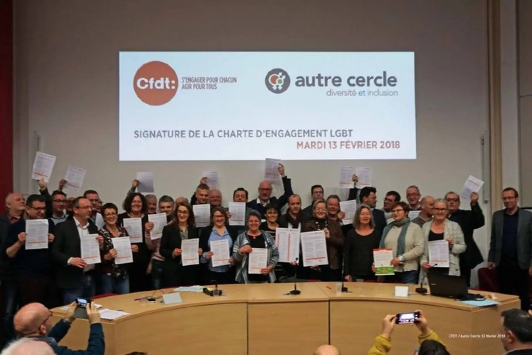 30 organisations de la CFDT (unions régionales et fédérations) ont également soutenu les recommandations de l'Autre Cercle, association qui œuvre pour l'inclusion des personnes LGBT, en signant la charte.