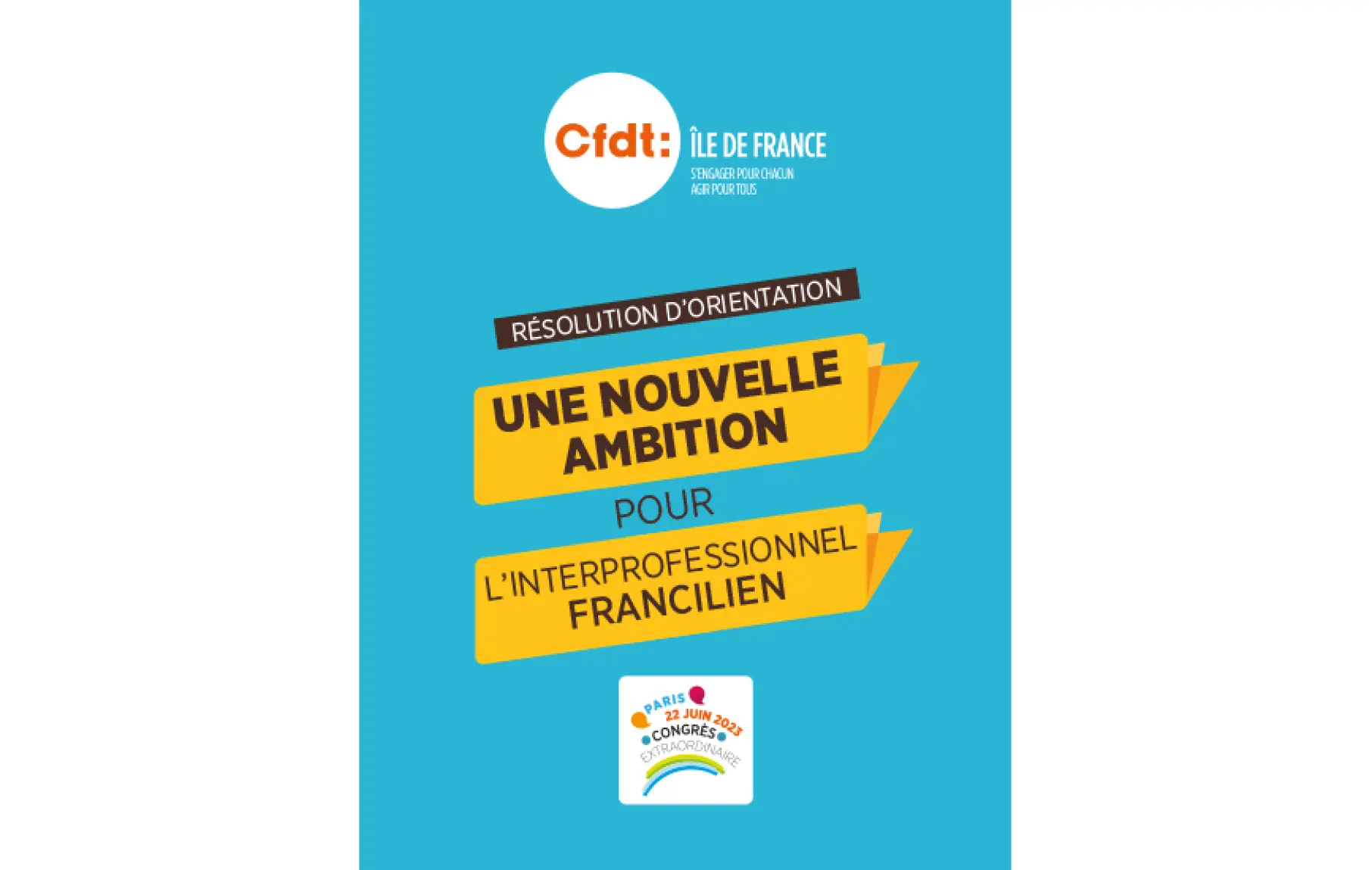 La résolution d'orientation du congrès extraordinaire du 22 juin 2023 de la CFDT Île-de-France, a été adoptée à 93,76% des mandats exprimés. Elle donne une ligne de route claire pour les actions et l'organisation de l'interprofessionnel dans les deux années à venir.