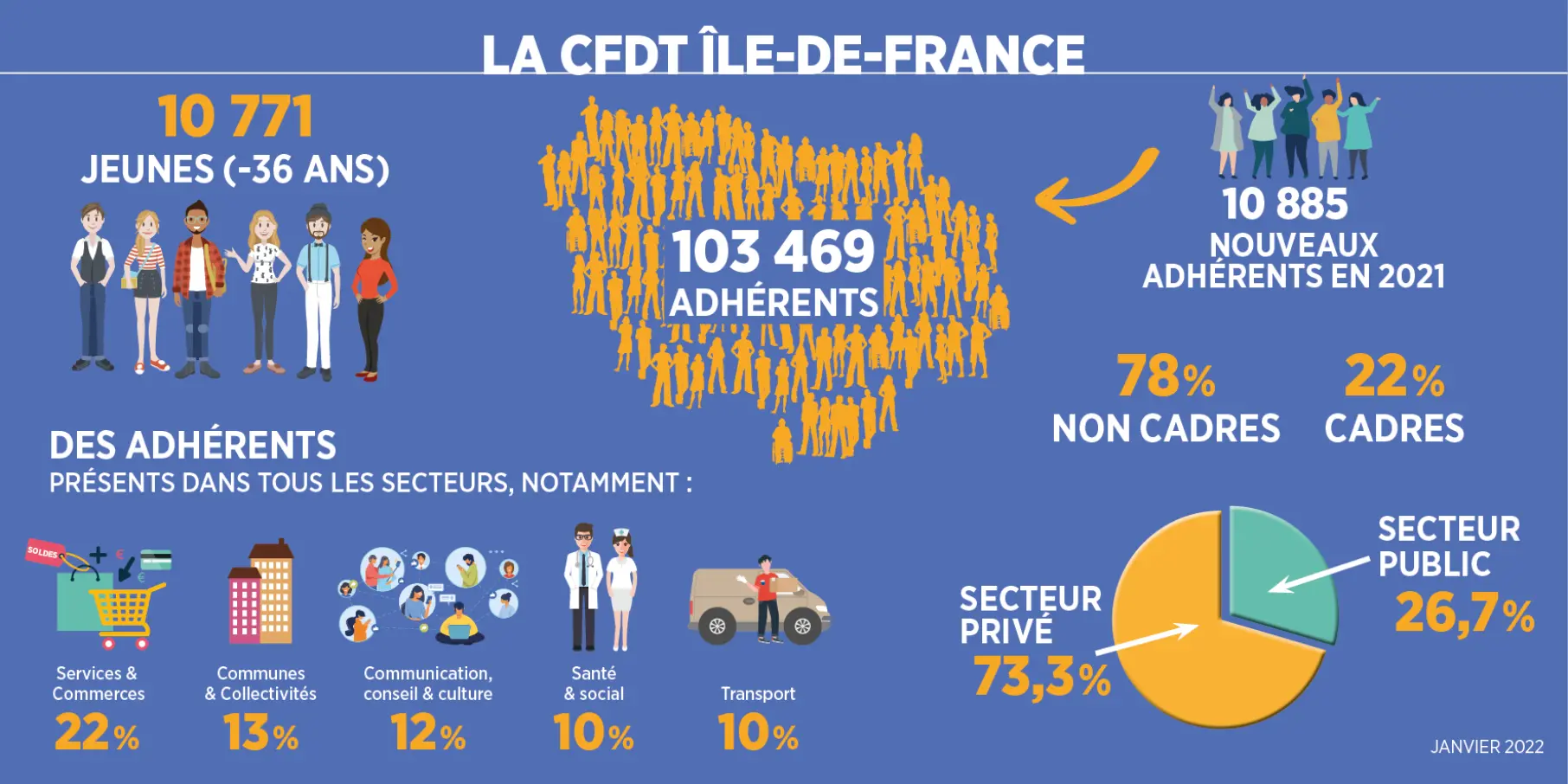 Voici les derniers chiffres de la CFDT en Île-de-France. Environ 10 000 nouveaux adhérents en 2021. Merci à toutes et à tous pour cet engagement !