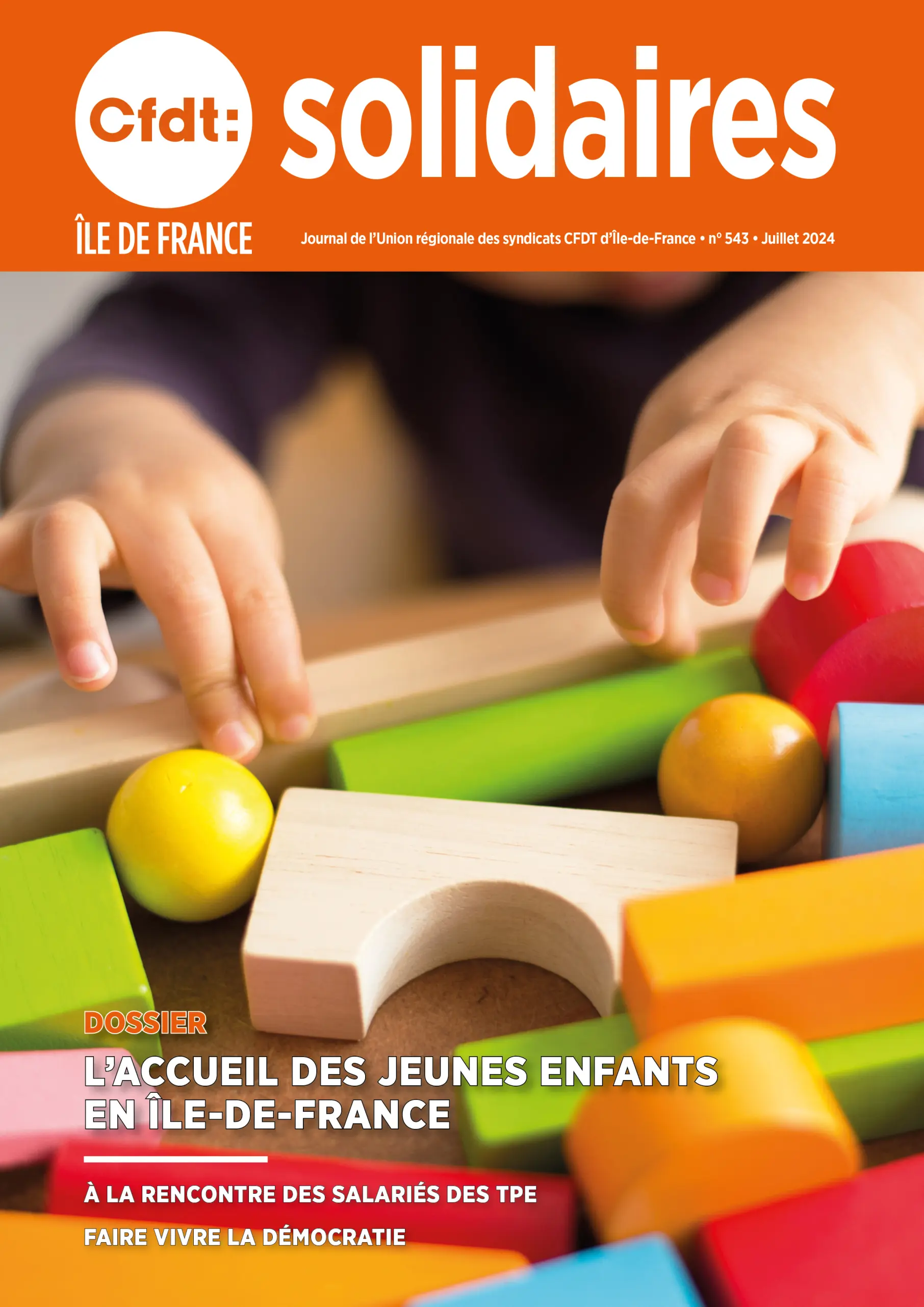 Ce Solidaires de juillet 2024 passe en revue les actions de la CFDT en Île-de-France pour l'accueil des jeunes enfants, ainsi que les accords signés par les équipes et le travail réalisé par les mandatés sur le sujet.