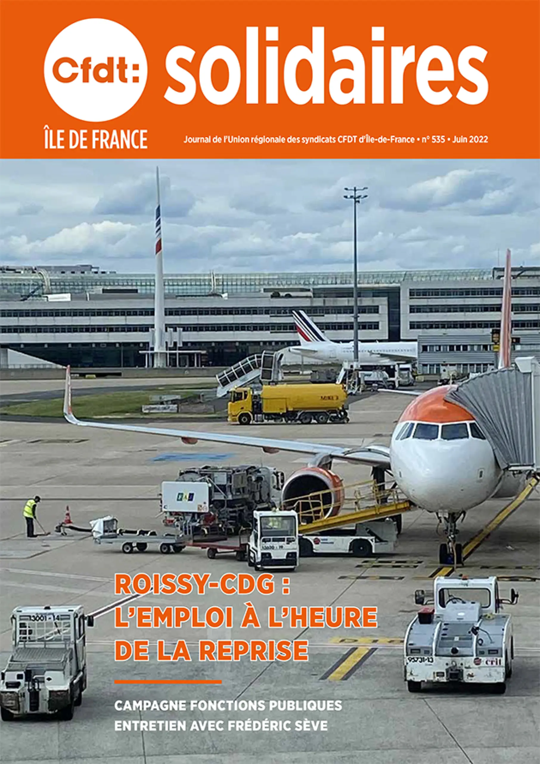 Au programme de ce numéro 535 de Solidaires, un dossier complet sur l'emploi dans la zone aéroportuaire de Roissy - CDG en situation de sous-effectifs, à l'heure où le trafic aérien reprend, l'interverview de Frédéric Sève, secrétaire national, les actions pour la campagne fonctions publiques...